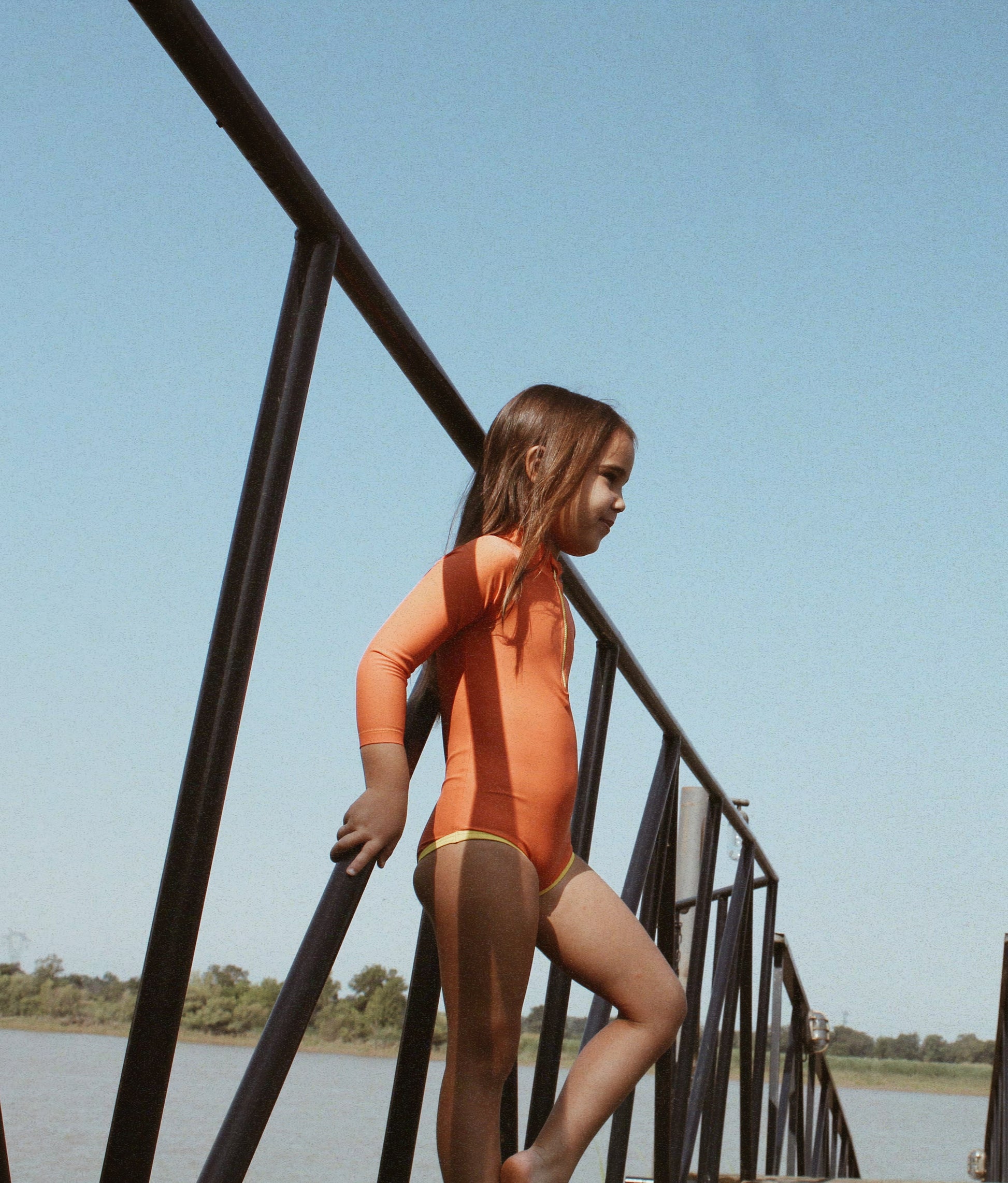 Mini mermaids will spend even more time in the water with this trendy swimming costume! A sporty chic swimming costume with a functional zip and contoured hem detail for a vintage look.
