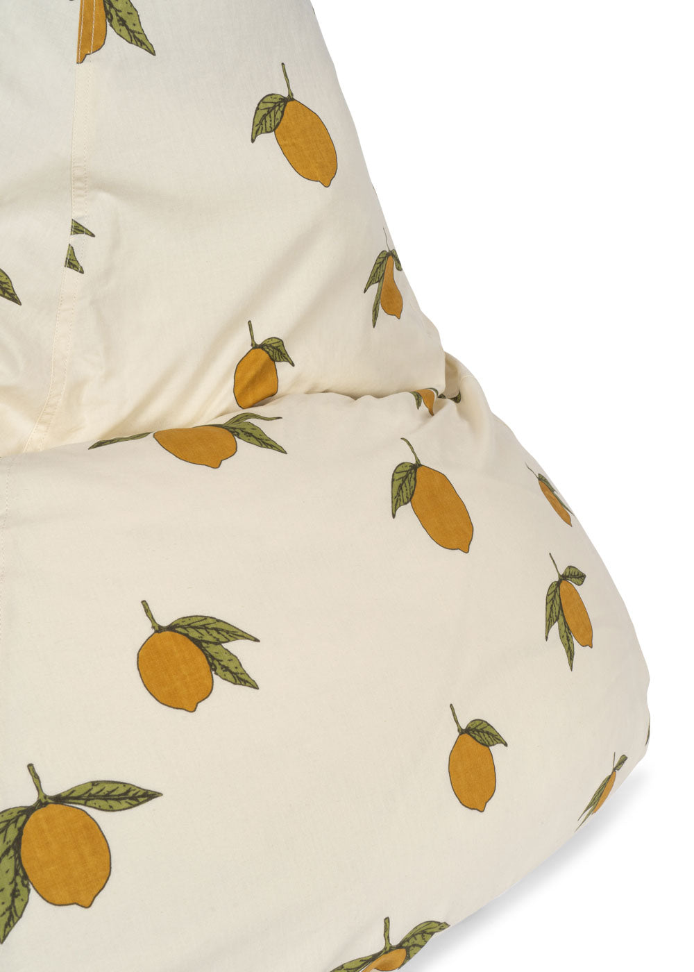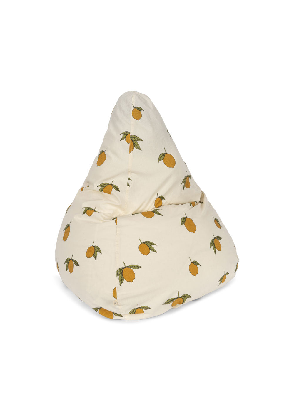 Soft bean bag made in 100% cotton with natural kapok filling. Measurements: 90 cm x 44 cm (bottom). Fabric cover is machine washable at max 30 degrees C.
