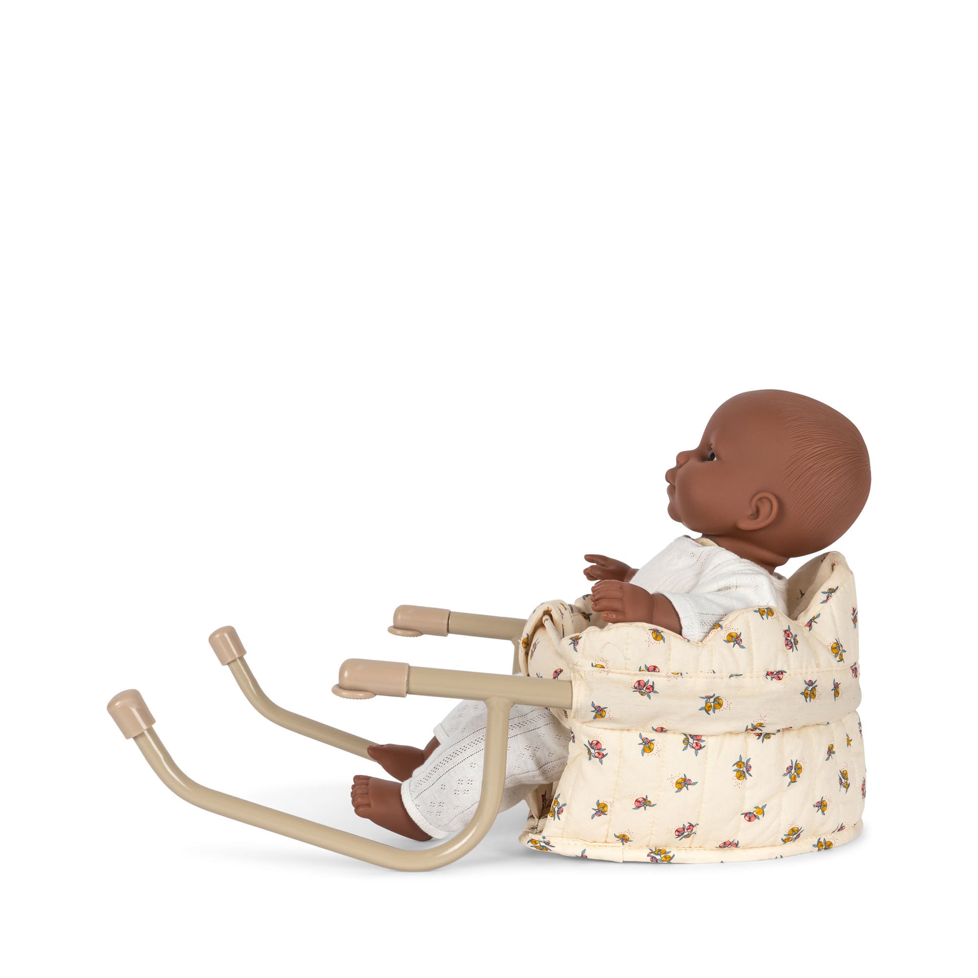 Doll table chair made in 100% quilted cotton with an iron frame. Easily attaches to the table. Designed with scallop edge details. Fits tabletops up to 2,2 cm in height H: 12cm x W: 43cm x L: 28cm 3 yr + WARNING: CHOKING HAZARD - Small parts. Not suitable for children under 3 years.