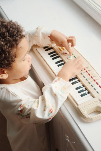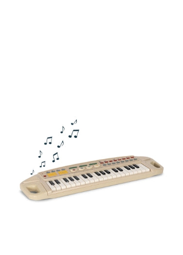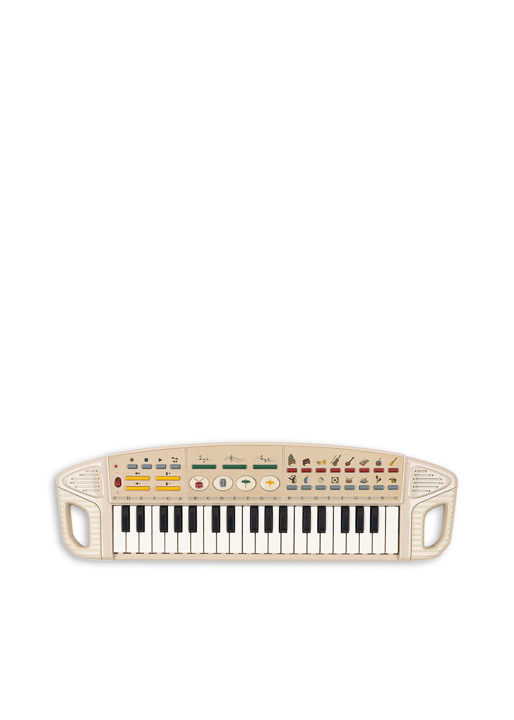 Music keyboard with 37 classic keys and multiple sound and recording functions. Includes different drum, background and rhythm sounds so you can create a full melody. Before use, insert 2 x AAA batteries (not included) 3y+ WARNING! CHOKING HAZARD. Small parts. Not suitable for children under 36 months. Do not use close to the ear! Misuse may cause damage to hearing.