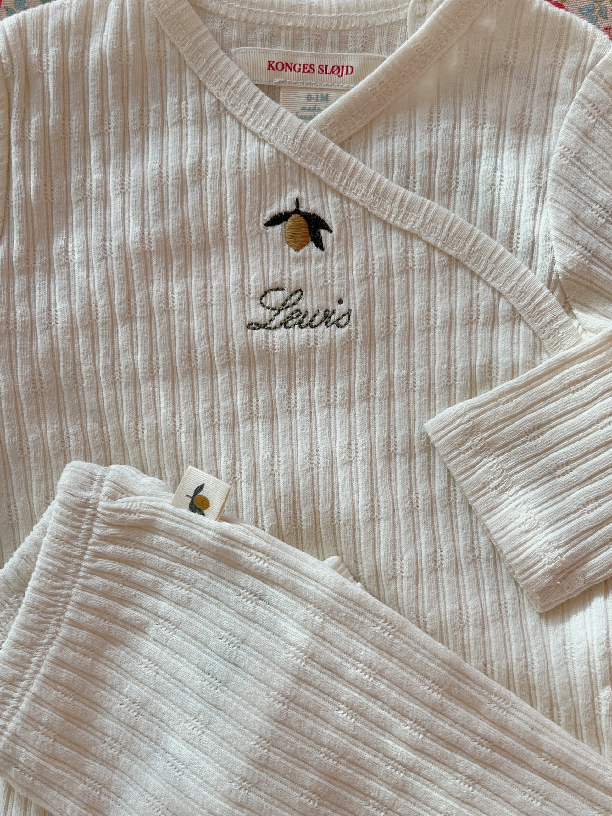 The perfect gift for new parents: A thoughtful maternity package with a soft wrap cardigan,. footed pants, a baby hat, and a soft snuggle bunny. Made from 80% organic cotton and 20% recycled polyester. GOTS, made with 80% organic materials, certified by CU 1094701.